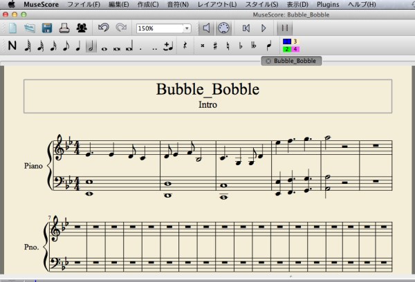 そこで今回、ごく簡単な伴奏を、フリーの楽譜作成ソフトを用いて作成してみました。