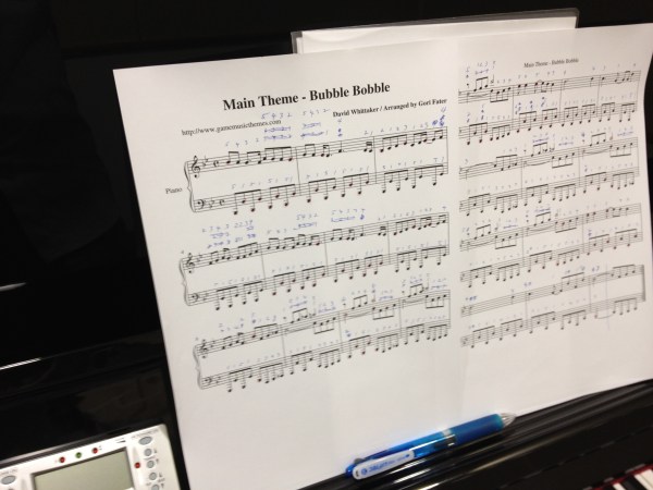 写真にある楽譜、伴奏が見た目よりも難しく、何度も反復練習していました。