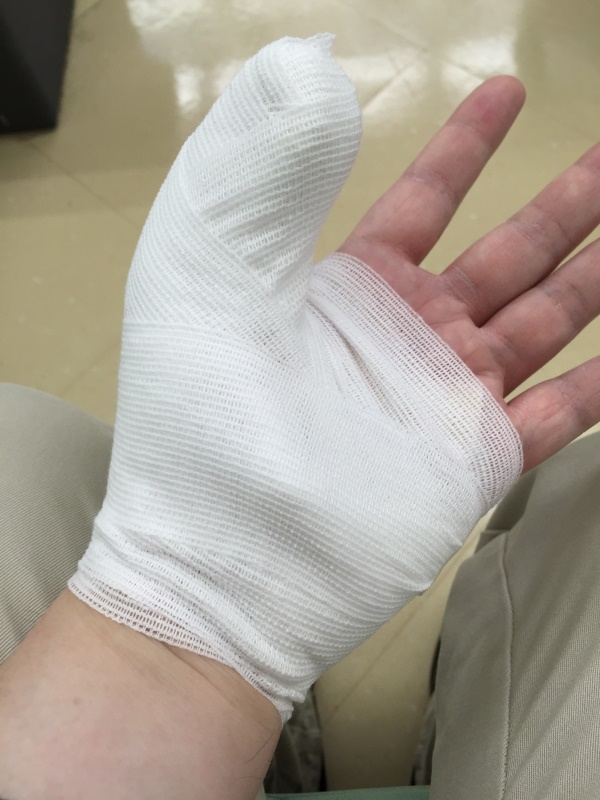 というのも、先週に左親指を怪我しまして。