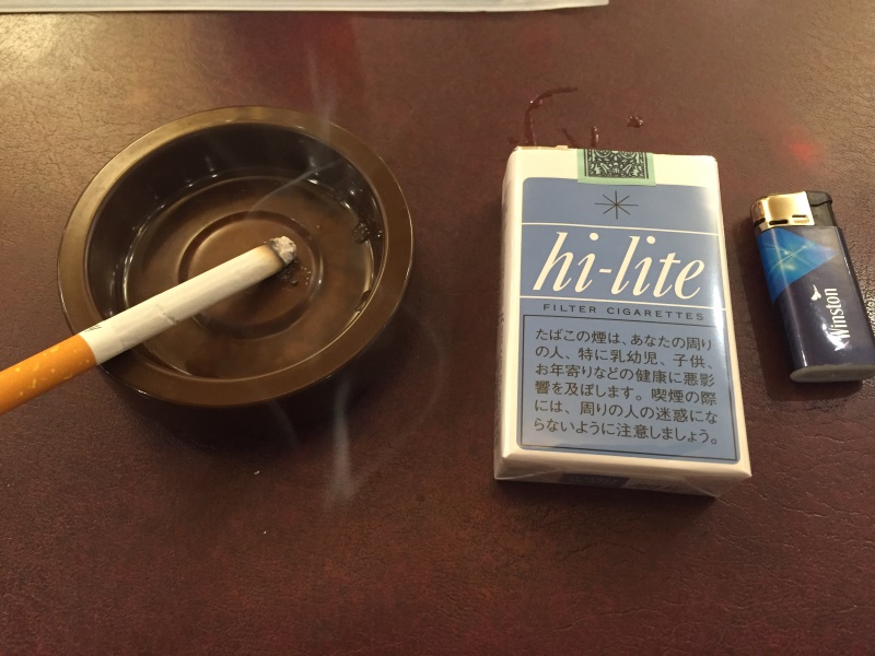 で、おなかも満足したところで、アイスティーをおかわりしつつ、おもむろにタバコを取り出します。